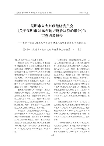《关于昆明市2018年地方财政决算的报告》的